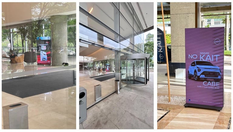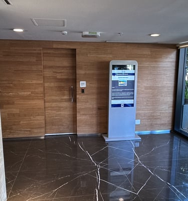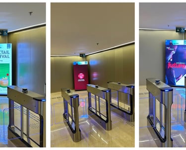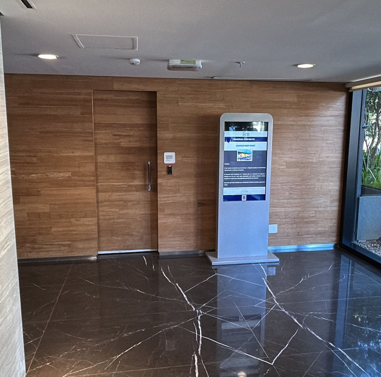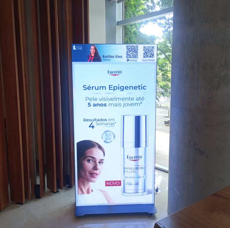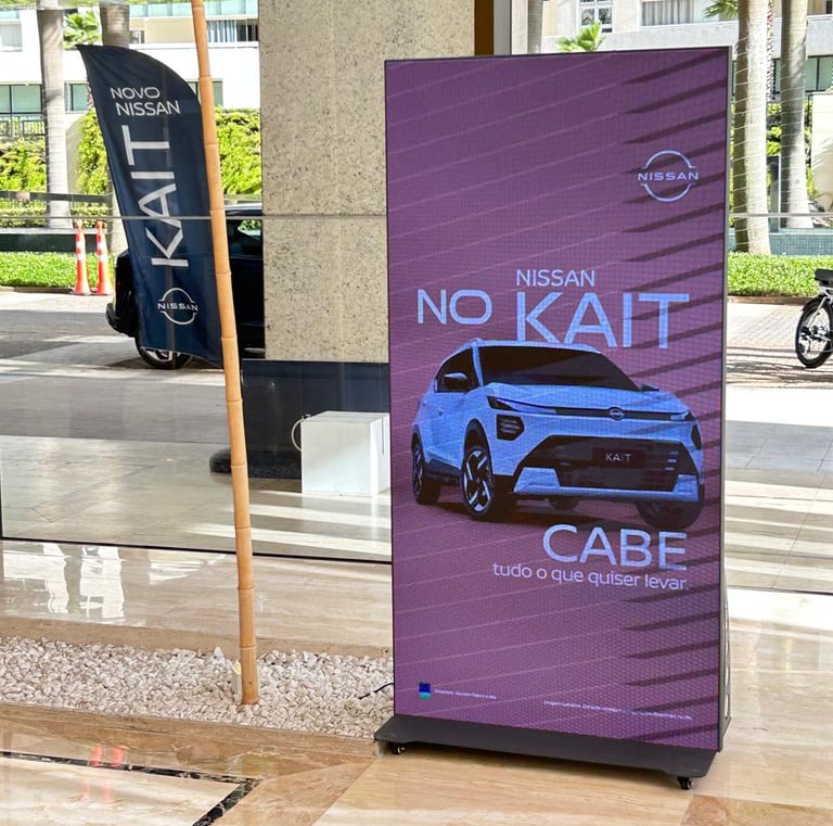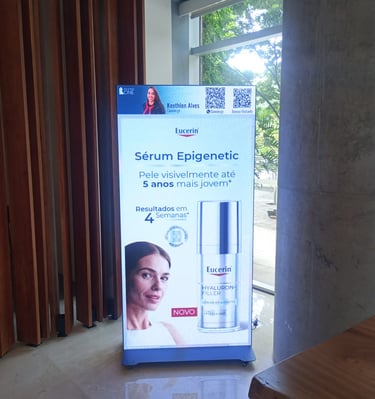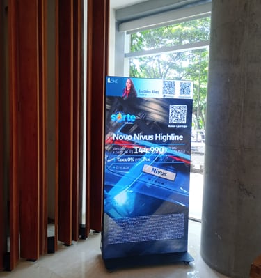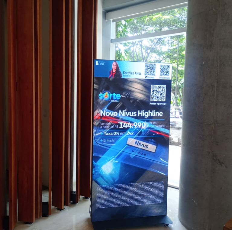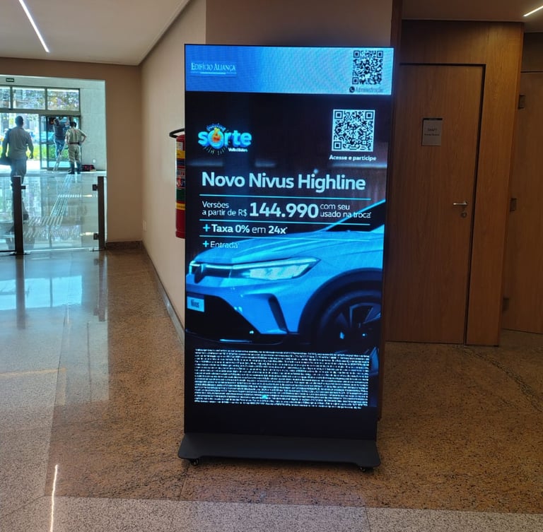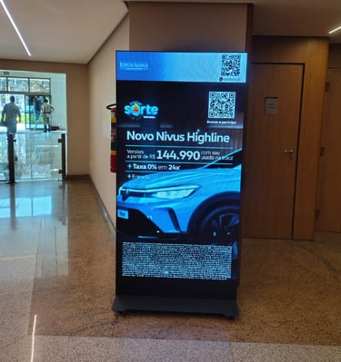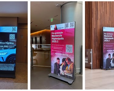 Telas digitais em locais estratégicos para máxima visibilidade.