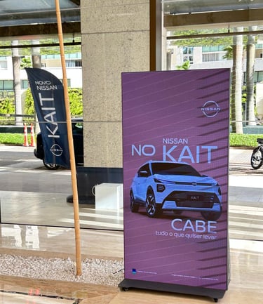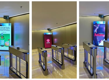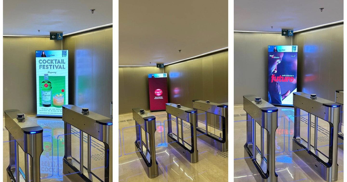 Comunicação visual impactante em pontos estratégicos de alto fluxo.